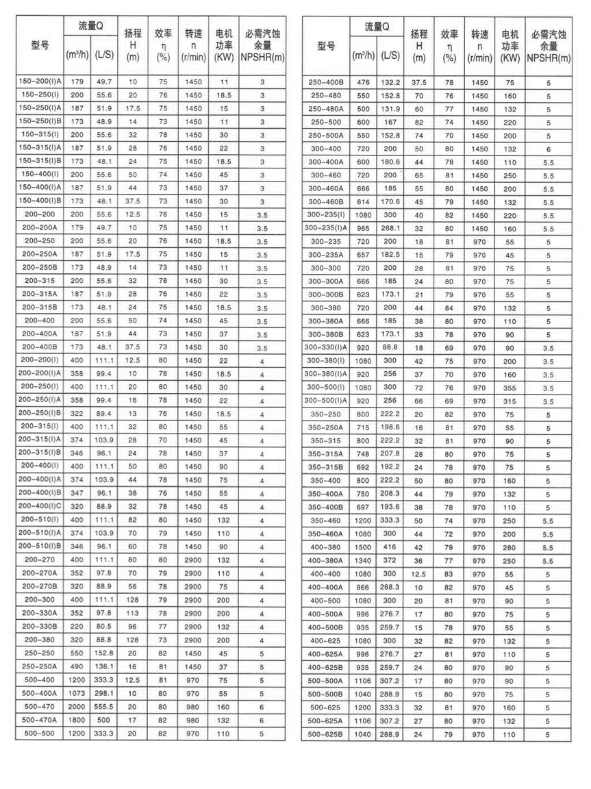 供輸送清水及物理化學(xué)性質(zhì)類似清水的其它液體之用。適用于工業(yè)和城市給排水、高層建筑增壓送水、船用、園林噴灌、消防增壓、遠(yuǎn)距離輸送、暖通制冷循環(huán)及設(shè)備配套。使用介質(zhì)溫度不超過80℃。適用范圍: 流量Q:1.5m3/h-1040m3/h 揚(yáng)程H:8m-128m
